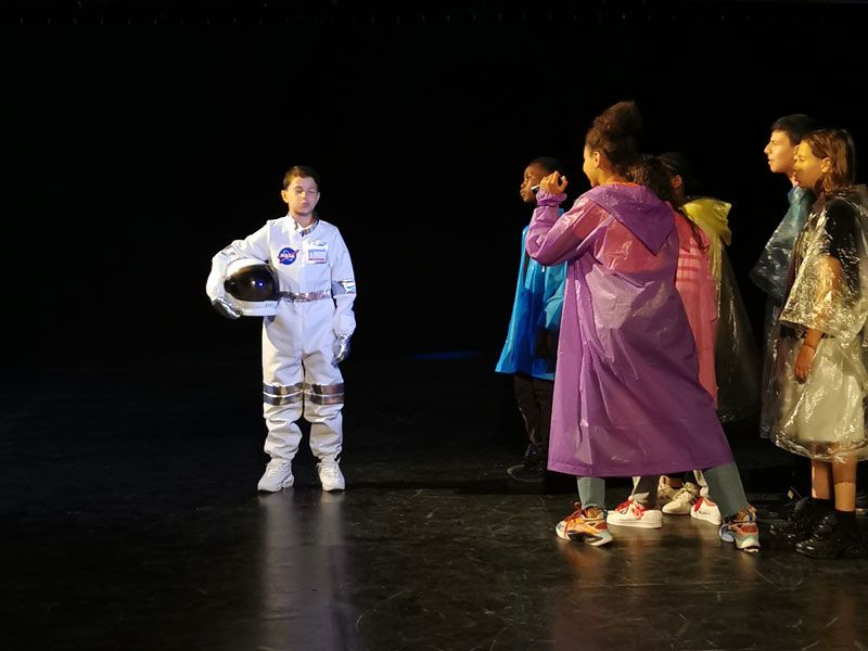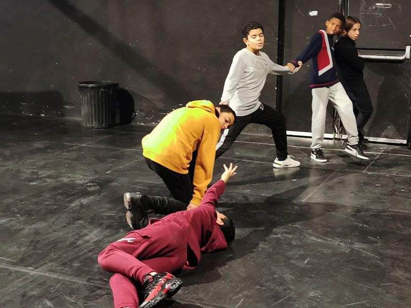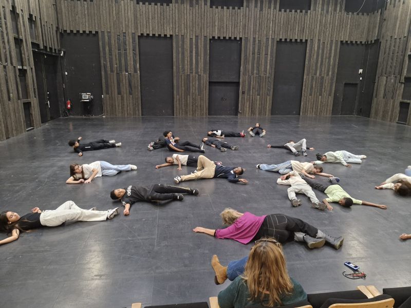 Après avoir passé le premier trimestre de la saison à faire des exercices de théâtre, corps et voix, les élèves apprennent depuis janvier le texte qu'iels vont présenter mis en scène à la fin de l'année : Fiesta de Gwendoline Soublin.