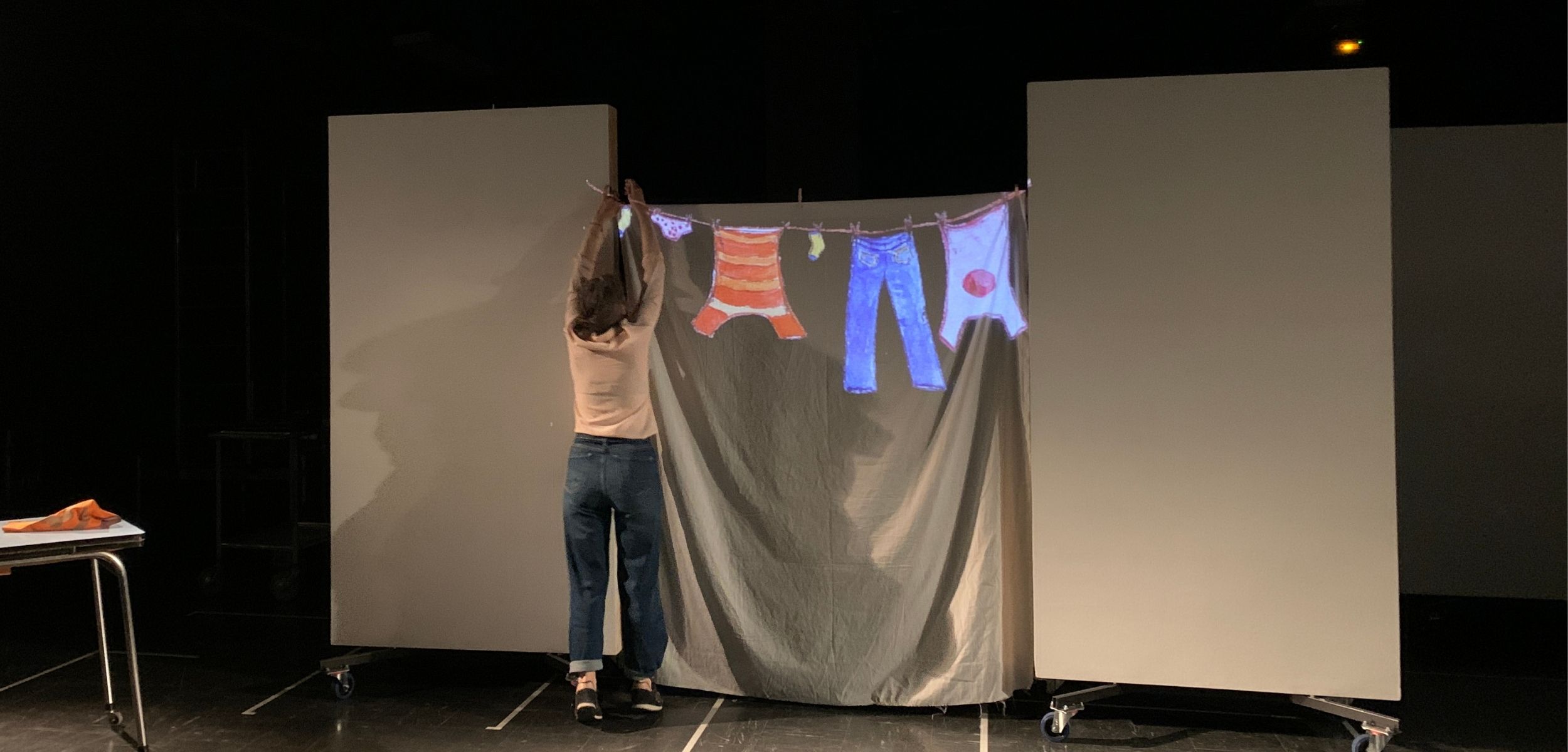 De grands panneaux modulent l’espace, tel un labyrinthe dans lequel Marzia pourrait se perdre. Les photos de famille prennent vie, pour aider la petite fille à dialoguer avec sa tante disparue. Petit à petit, elle remet le puzzle en place et elle fait exploser les non-dits qui pèsent sur la famille. Dessins, ombres, projections et musique live permettent à la Compagnie Clandestine d’évoquer les secrets de famille avec légèreté et poésie.
