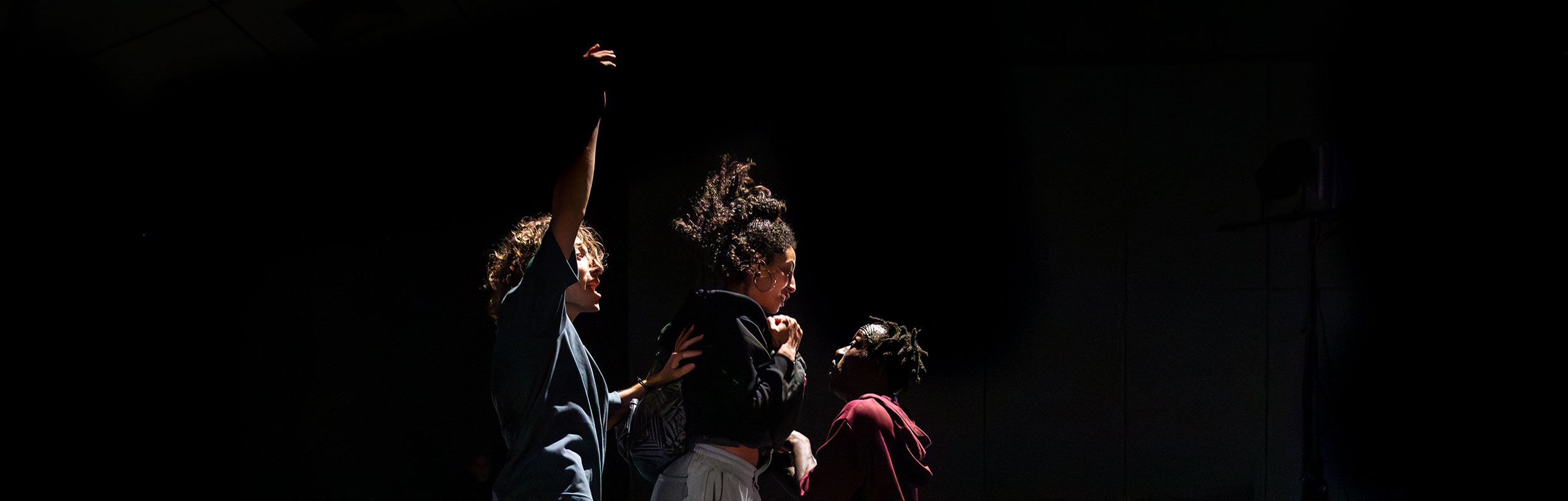 Il y a tant à dire à l’âge adolescent, tant à partager sur soi et le monde, tant à taire aussi. Chaotique, musicale, continue, heurtée, la prise de parole adolescente est singulière, sauvage et précieuse. Elle se heurte aux autres, aux attentes, aux discours adultes. Verbale tout autant que corporelle, imagée tout autant que silencieuse, elle dit le monde… mais l’entendons-nous ? Entourée de 4 gradins, la scène devient une agora, un ring. Ici 3 jeunes adultes, comédien·nes et danseur·seuses, empreint·es encore de l’adolescence, tentent de trouver une forme à leur silence. Ensemble, ils cherchent, tentent de dépasser la difficulté de nommer, de verbaliser. Ils résistent, tâtonnent, se taisent. C’est en empruntant d’autres voix-voies : la course, la danse, la lutte, le chant, le regard… qu’ils disent. C’est en inventant, en jouant dans un rythme soutenu et joyeux qu’ils façonnent leur propre langage et se racontent, nous racontent.