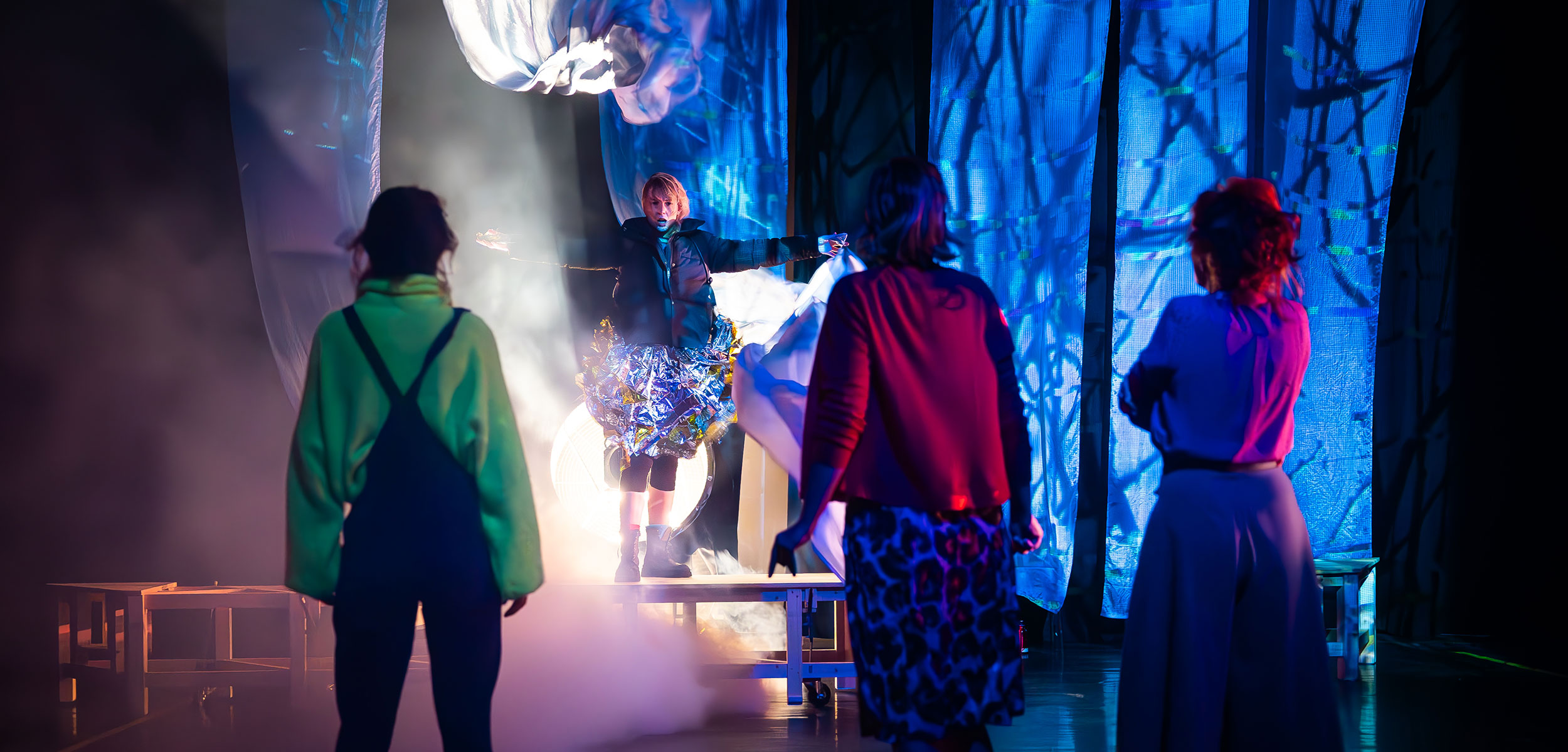 Quatre femmes, d’âges différents, quatre vies, quatre rapports singuliers aux écrans, aux informations. Surgit un cataclysme fait d’odeurs nauséabondes, de fumées suspectes et de poudre dorée recouvrant la forêt alentour. Cet incident provoque une grande panique et vient se frotter aux enjeux personnels de Lily, Florence, Geneviève et Zoé en les obligeant à s’adapter et à se réunir.