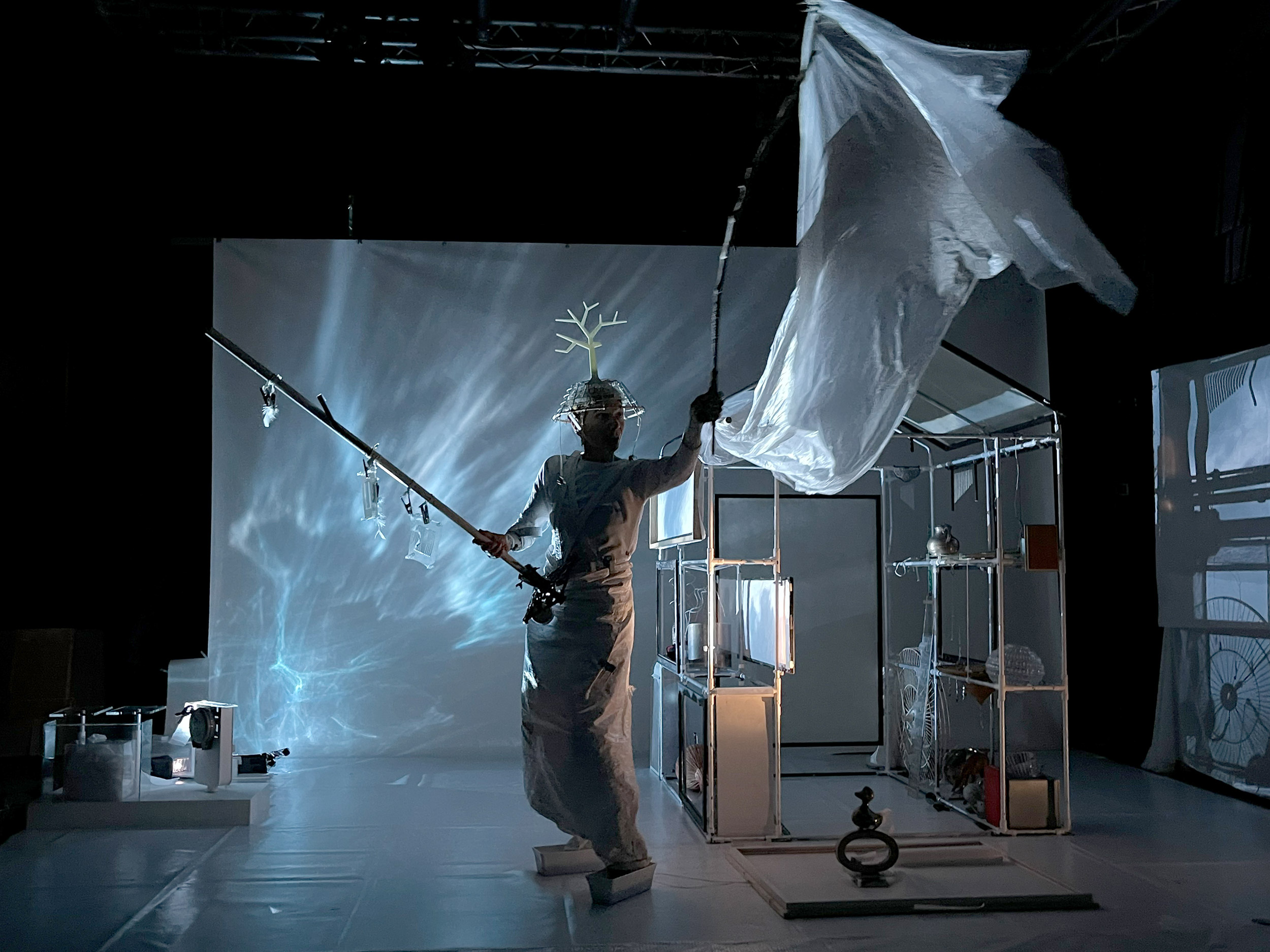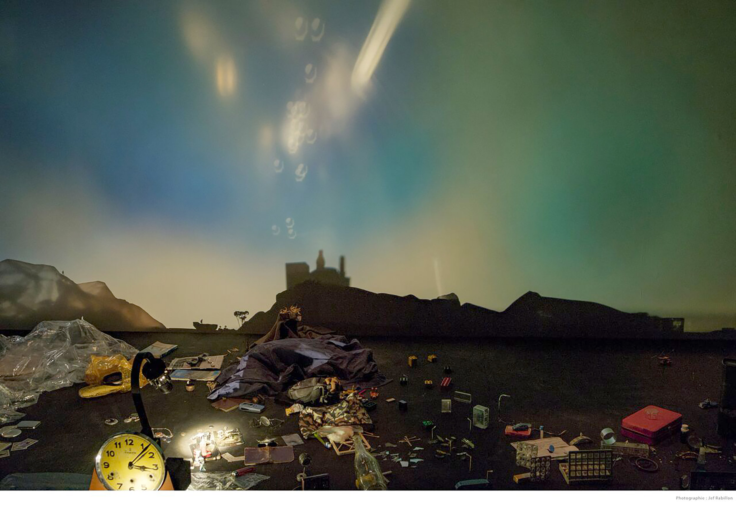 Mise en espace, scénographie et jeu Katerini Antonakaki · Musique Ilias Sauloup · Création d’images et scénographie visuelle Olivier Guillemain · Interprétation sonore et régie Christine Moreau · Regard extérieur Achille Sauloup