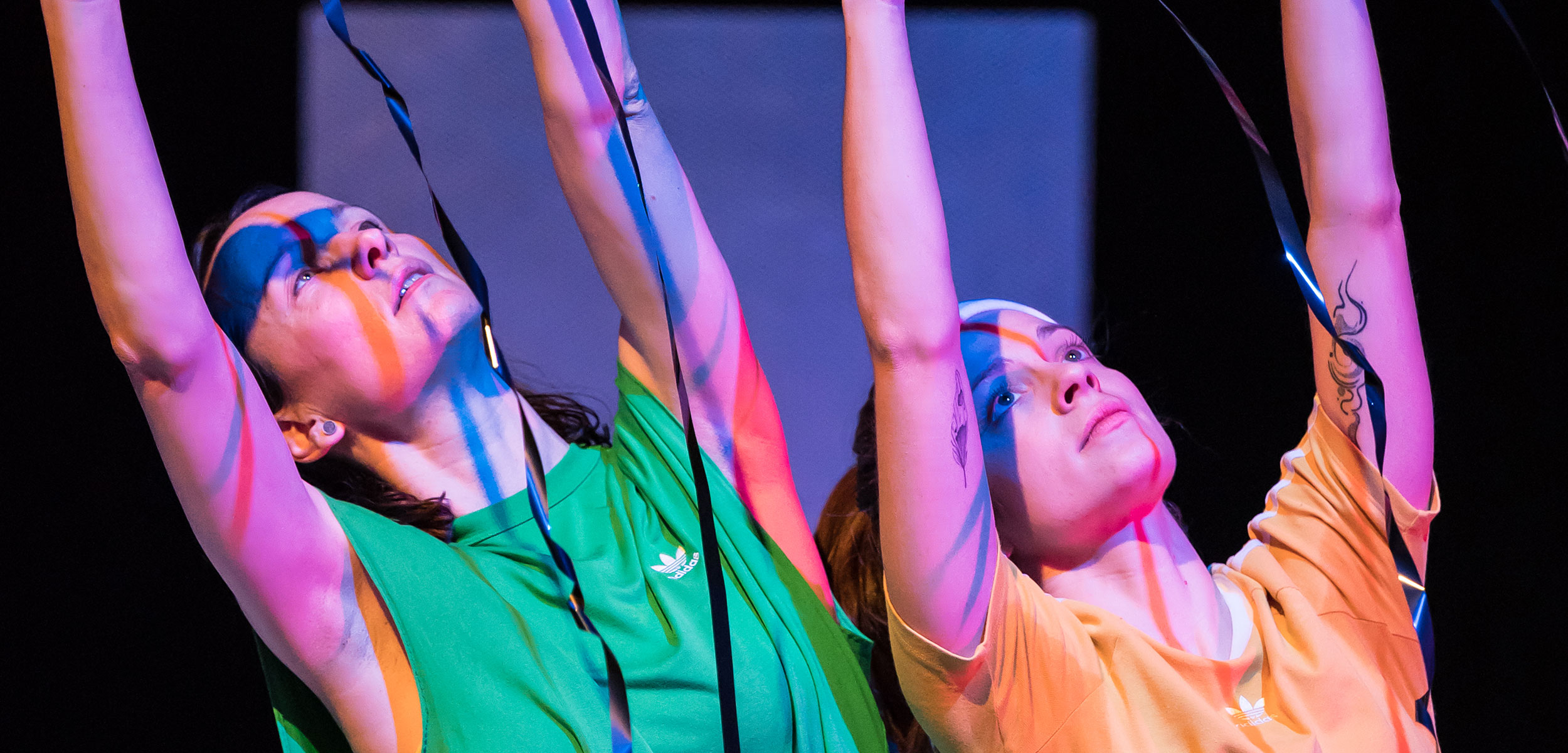 Un duo de danse explore avec une inventivité réjouissante la cassette audio et sa bande magnétique.