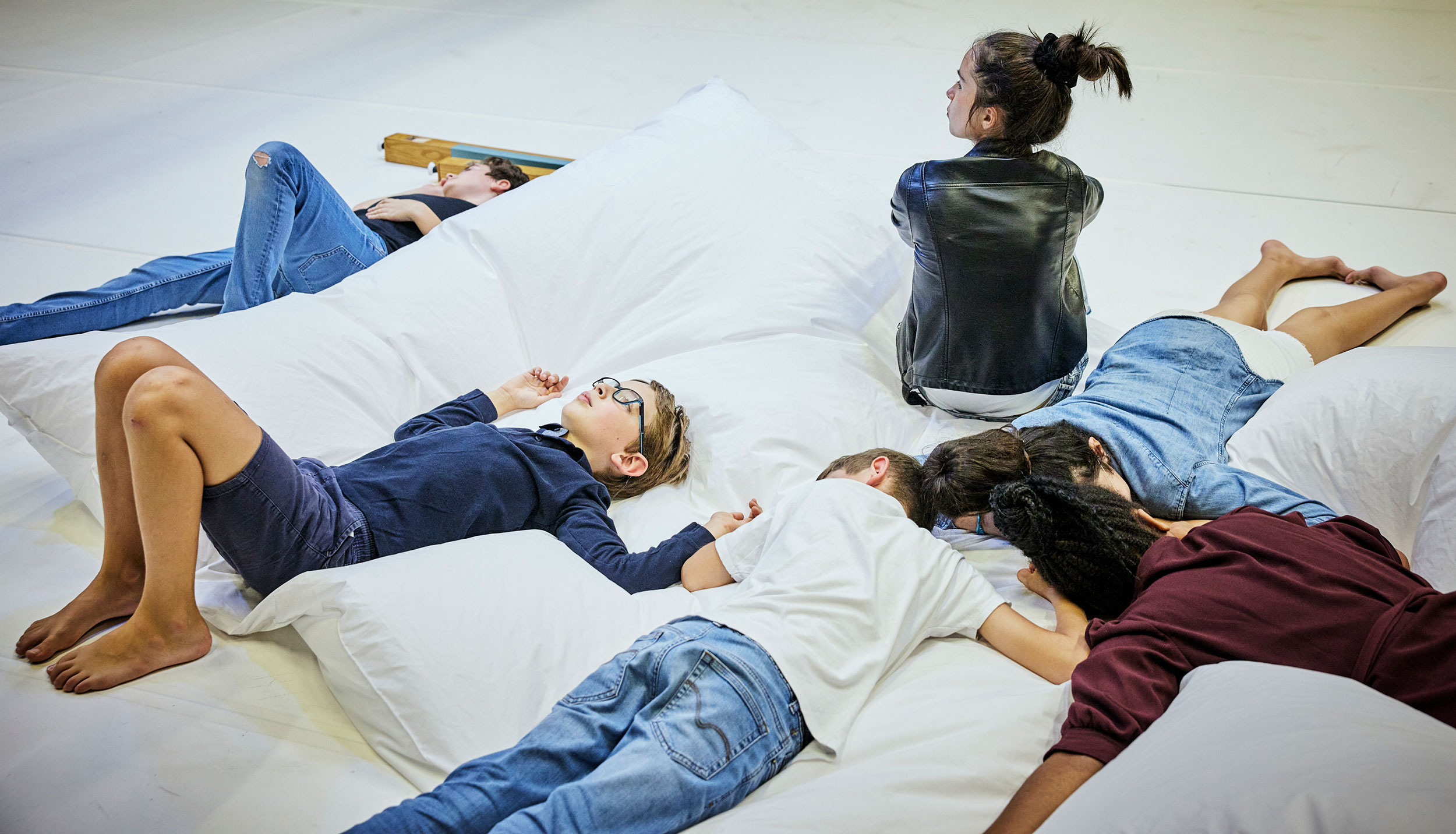 Ces enfants sont à la fois danseur·ses et musicien·nes de la partition. Ils et elles sont autant le corps de ballet que l’orchestre. Un orchestre d’objets et de matières, dont la manipulation suppose une forte dimension gestuelle et corporelle.