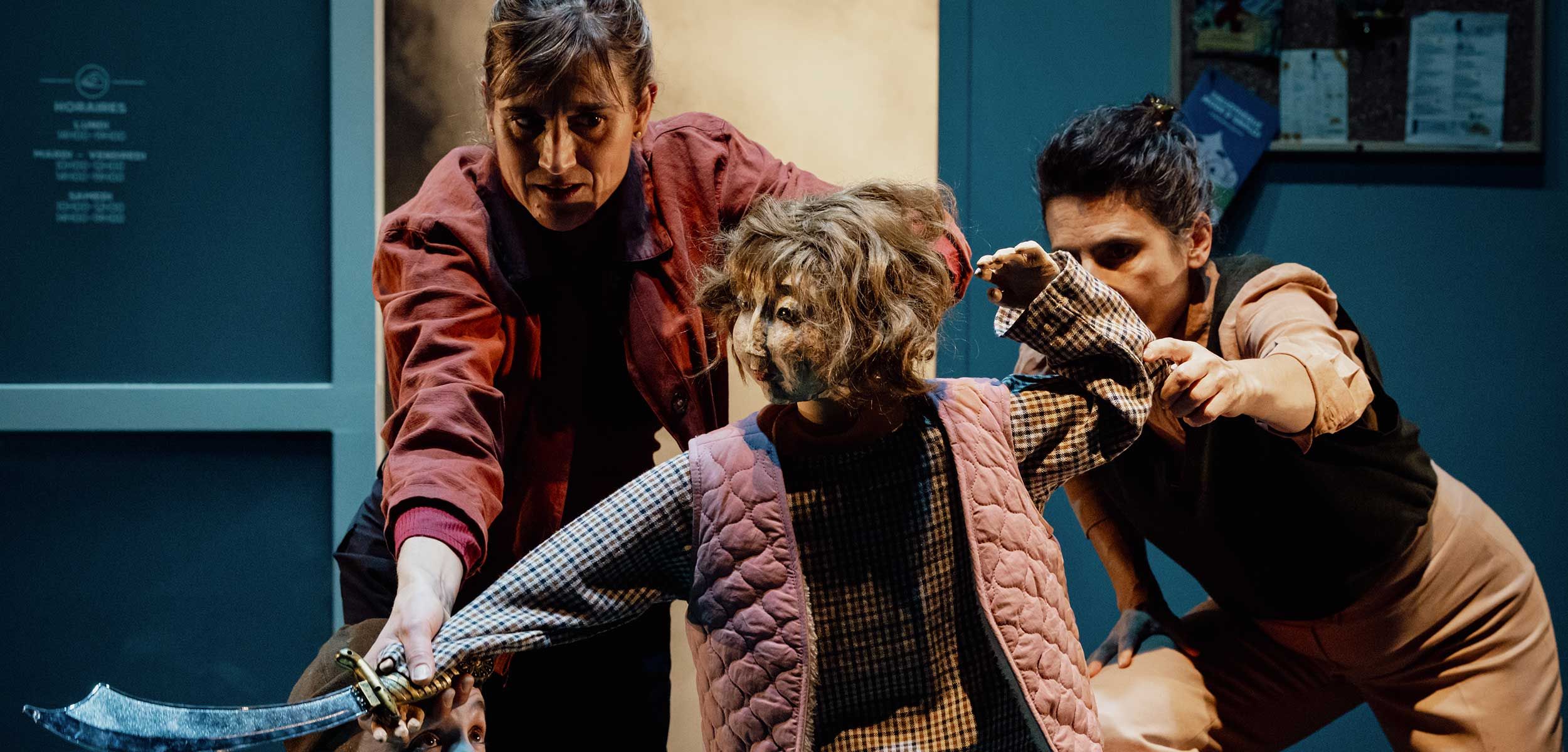 Les enfants sont incarnés par des marionnettes. Mais elles semblent presque plus vivantes que les marionnettistes.