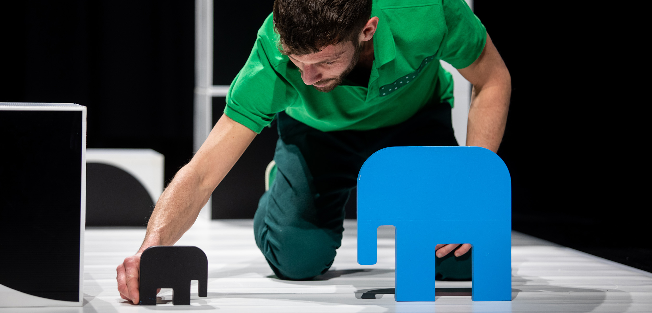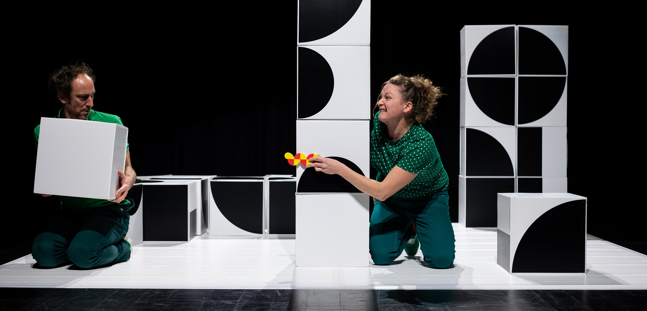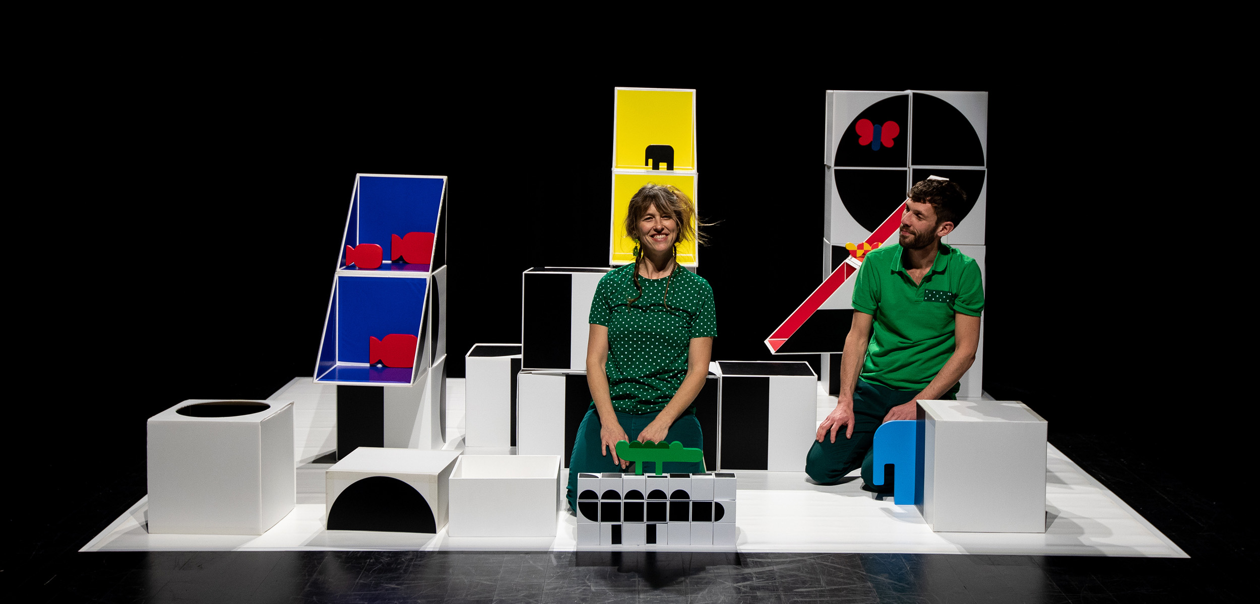 Autour du spectacle, l'imaginaire de Vincent Mathy se déploie également dans un parcours ludique. cette exposition invite les tout-petits accompagnés d'adultes à jouer avec les formes et les couleurs.