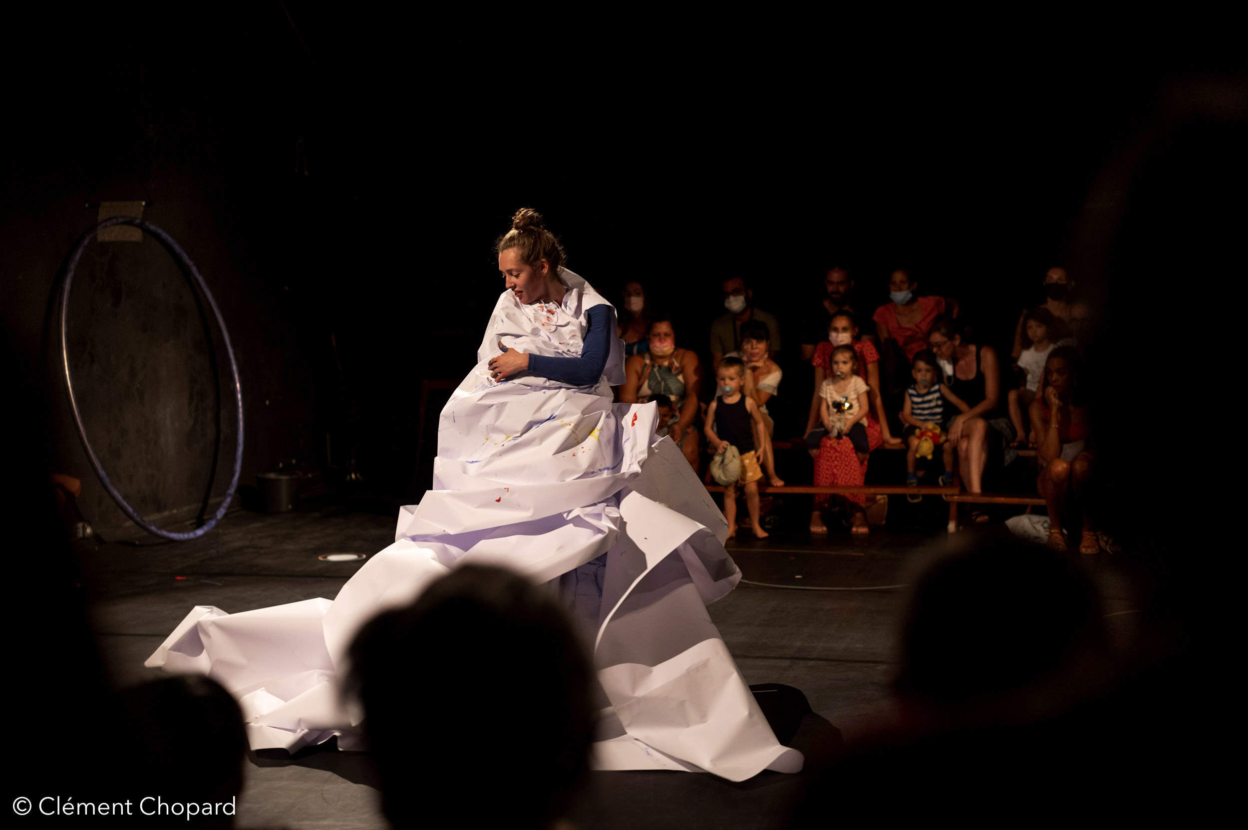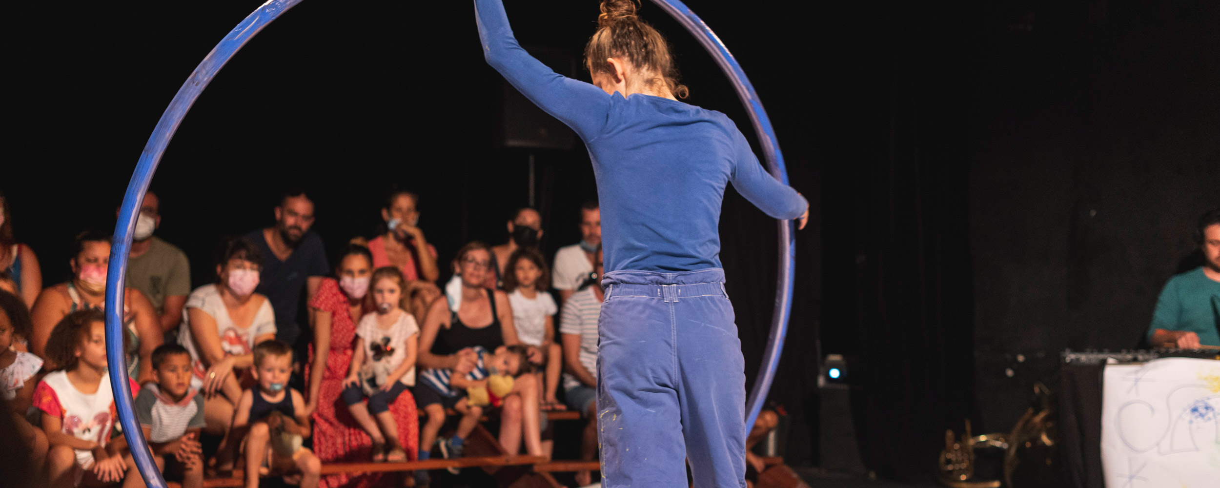 Le musicien quant à lui développe une musique urbaine samplée, proche de l’influence trip-hop dans laquelle se glisse une ritournelle empreinte de nostalgie. Dans cette mise en scène circulaire, les spectateur·rices retrouvent la piste du cirque autour de laquelle ils s’installent pour un voyage sans narration, plein de charme et débordant de créativité.